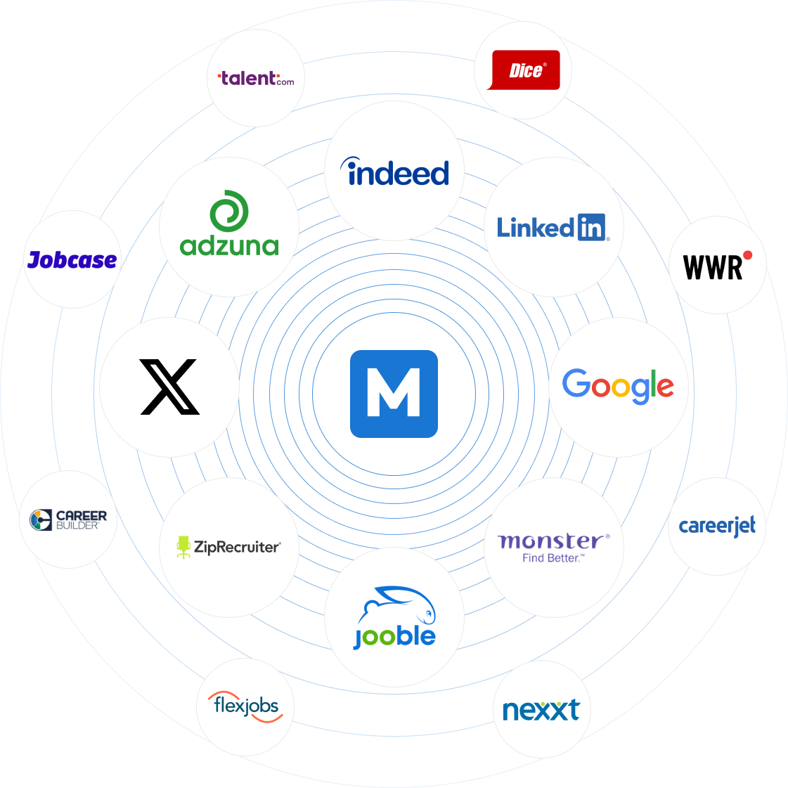 Share your job openings on 2,500+ free and premium channels, including local, global, and specialized job platforms such as Indeed, LinkedIn, Monster, CareerJet, JobStreet, and many more.