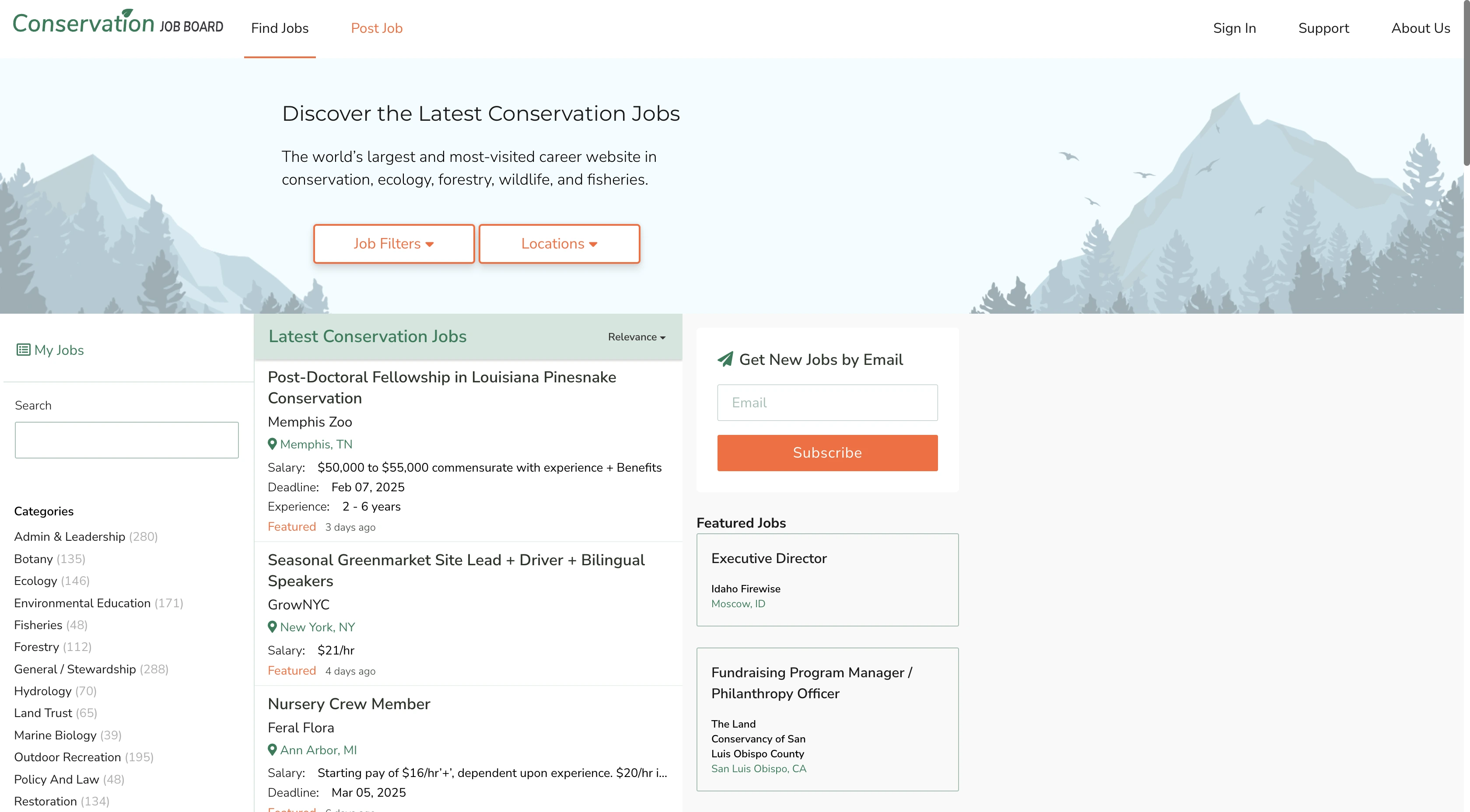Conservation Job Board connects recruiters with talent in conservation, natural resource management, and environmental science. It attracts candidates with strong academic and professional backgrounds, often including those looking for roles in government agencies, nonprofits, and research organizations. The board allows recruiters to focus on sustainability-minded professionals.