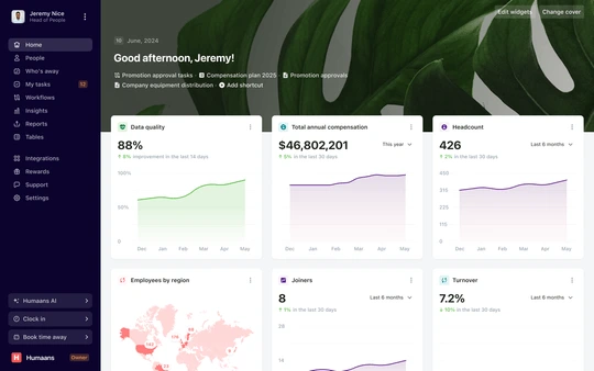 Modern HR platform for global teams. Includes onboarding, performance feedback, compensation management, and analytics to boost engagement and culture.