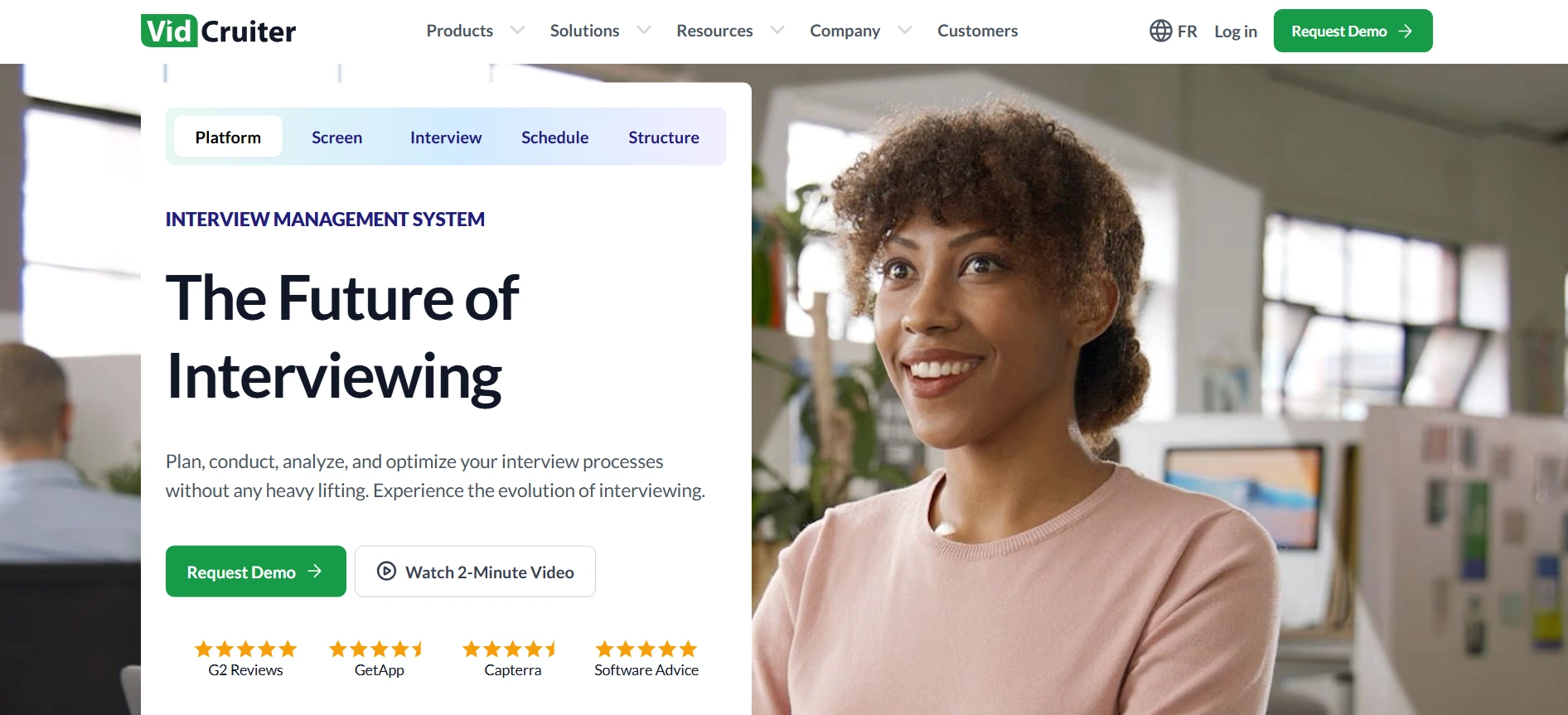 - Candidates record video responses to interview questions, eliminating the need for live scheduling.