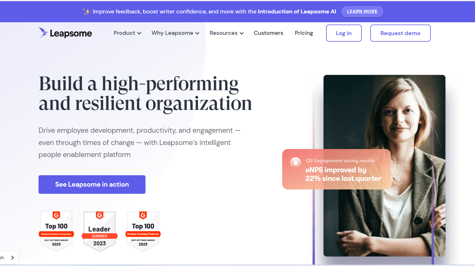Leapsome is an all-in-one tool for performance management, employee engagement, learning & development. Its features range from 360-degree feedback and goal setting to performance evaluations, surveys, and feedback options. The software enables organizations to create a culture of continuous growth by providing tools to set goals, provide feedback, recognize achievements, and facilitate employee development.