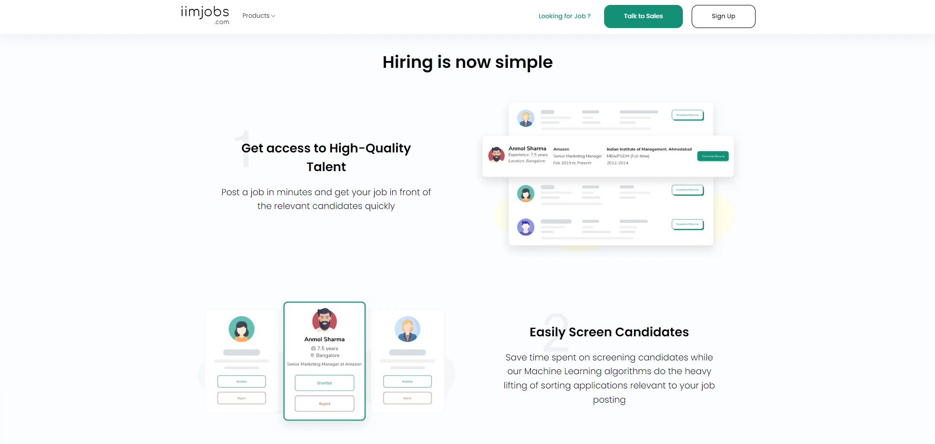 IIM Jobs is a premier job board specializing in high-quality job opportunities for management professionals. It caters primarily to MBA graduates and experienced professionals seeking roles in marketing, finance, consulting, and other managerial positions. The platform is known for its curated listings from top-tier companies and offers a range of tools for recruiters to filter and find the best candidates based on specific criteria such as experience, education, and industry.