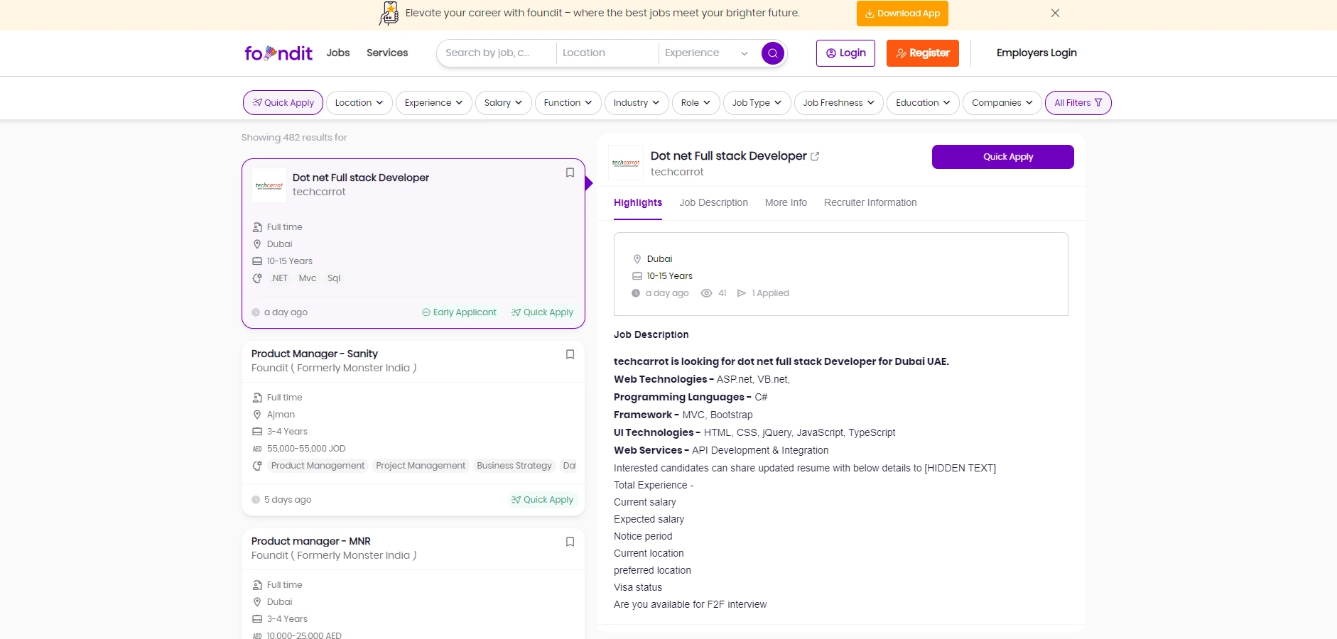 Dubizzle is a leading online classifieds platform in the UAE that serves as a vital resource for recruiters looking to connect with a diverse talent pool across various industries. Launched in 2005, it provides businesses with a user-friendly platform to post job vacancies and reach potential candidates actively seeking employment in the region. With over 5 million visitors per month and receiving around 2 million job applications monthly, it makes the job portal a valuable tool for you who want to connect with a wide range of candidates.