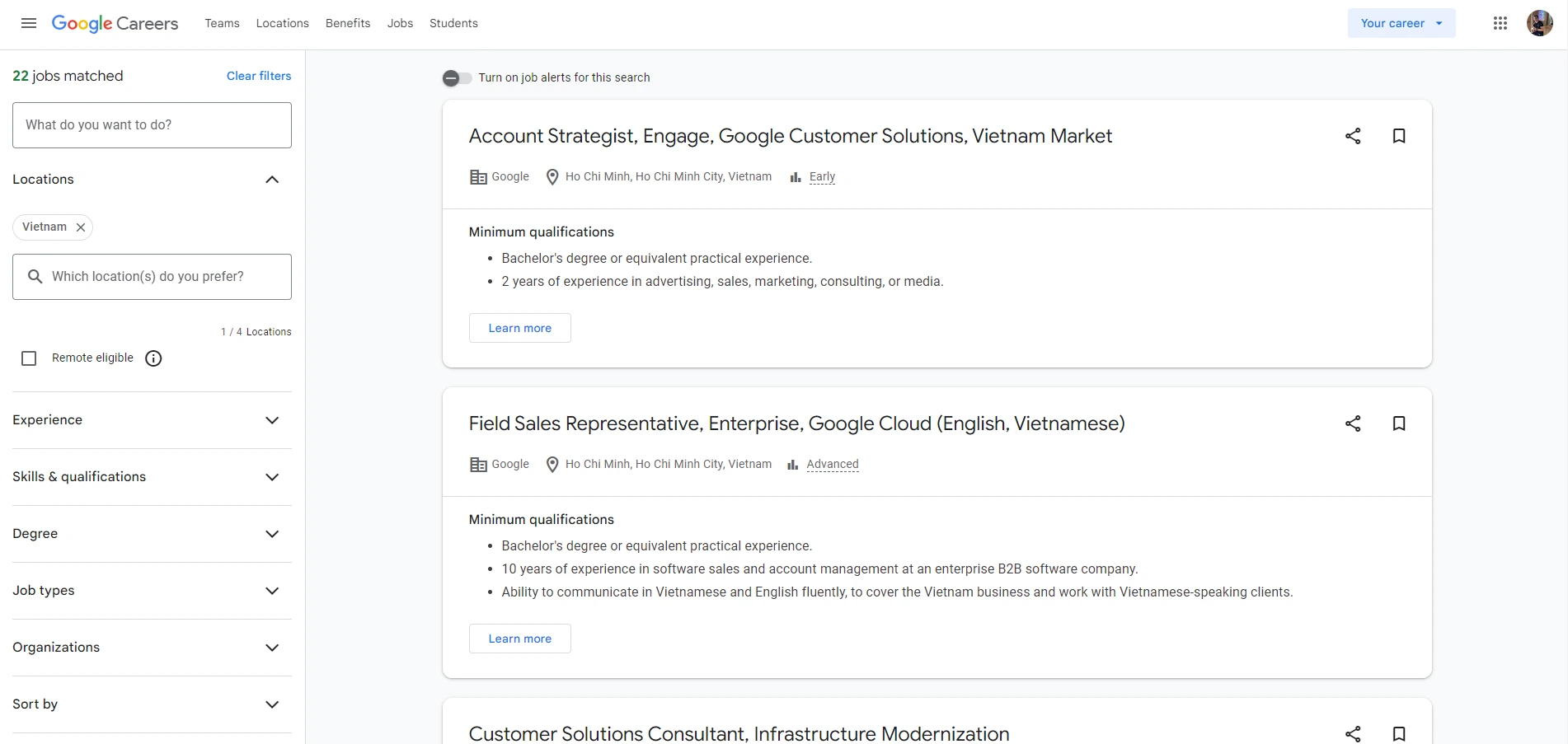 Google for Jobs is a job search feature powered by Google that aggregates job listings from various sources, including job boards and company websites. In Vietnam, Google for Jobs helps job seekers find relevant job opportunities quickly. For recruiters, ensuring that their job postings are optimized for Google for Jobs can significantly increase visibility and attract more candidates.