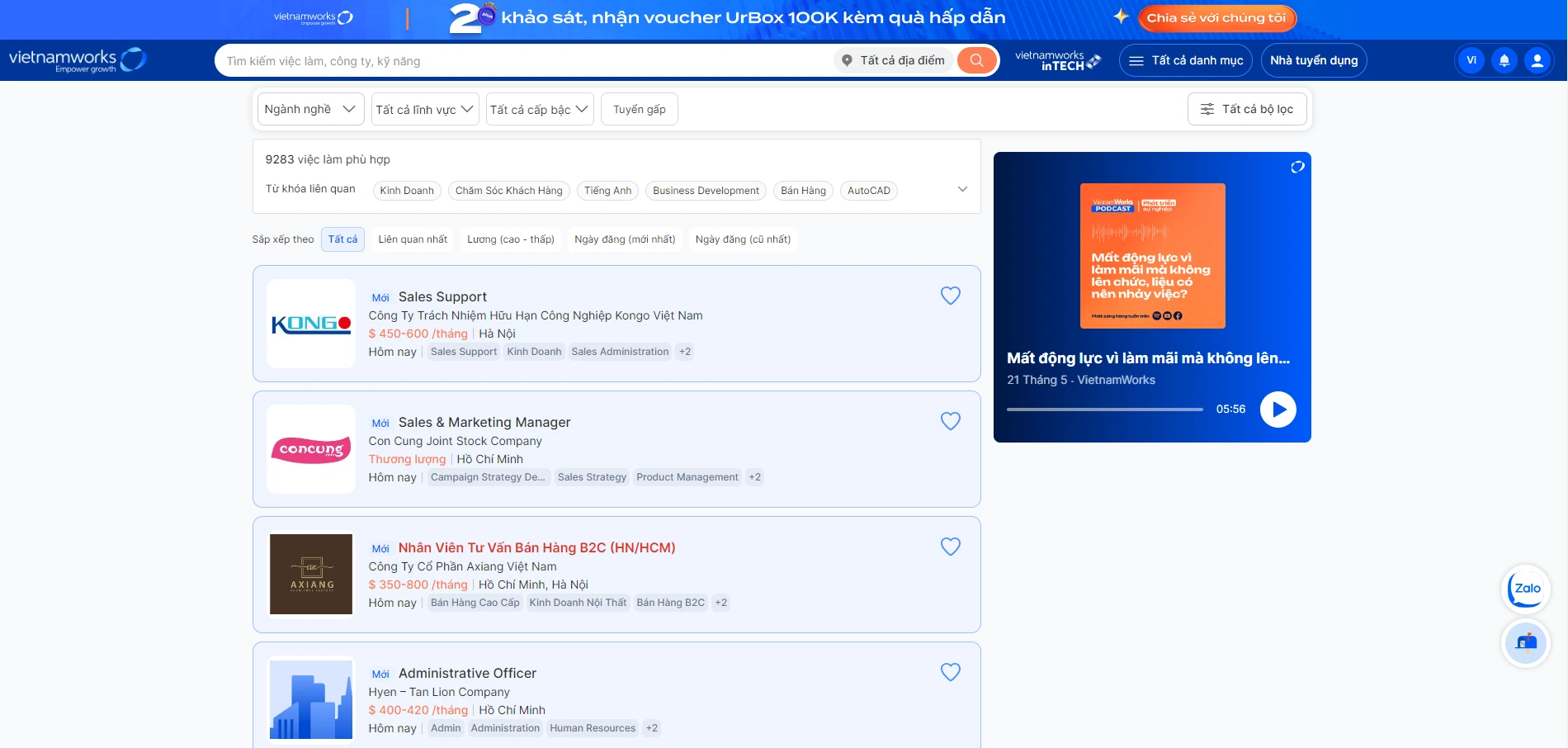 Timviecnhanh translates to “Quick Job Search” and lives up to its name by providing a fast and efficient job search experience. It is widely used by both job seekers and employers in Vietnam. The platform offers a variety of job categories and allows recruiters to post job ads quickly and easily. Timviecnhanh is particularly popular among small and medium-sized enterprises (SMEs) looking for quick hires.