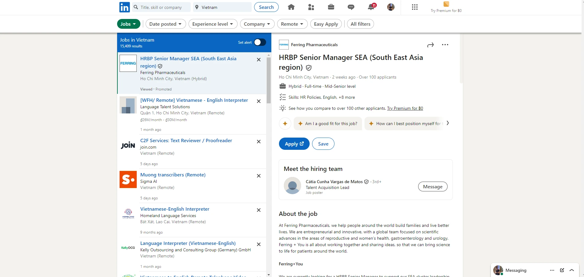 LinkedIn is a professional networking site that doubles as a powerful recruitment tool. In Vietnam, LinkedIn is popular among professionals in various industries. Recruiters can use LinkedIn to post job ads, search for candidates, and connect with potential hires. The platform’s advanced search filters and InMail feature allow recruiters to reach out to candidates directly, making it easier to find and engage top talent.