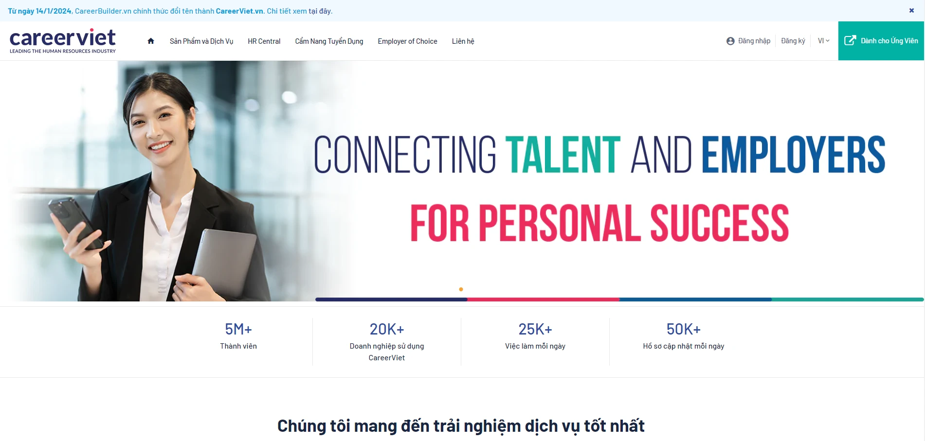 CareerViet, formerly known as CareerBuilder, offers a vast database of over 450,000 job opportunities and is trusted by more than 20,000 businesses. It provides extensive job listings across various sectors, advanced search and filtering tools, a large resume database, and employer branding options. Recruiters benefit from its wide reach, efficiency, and access to high-quality candidates, particularly in IT, finance, and healthcare. The job posting site also offers detailed analytics and support services, making it a powerful tool for streamlining recruitment processes and connecting employers with top talent.