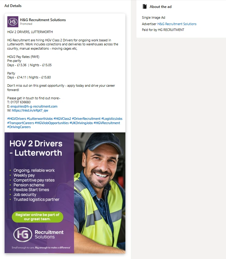 Hiring Ad Example: H&G Recruitment Solutions - HGV 2 Drivers