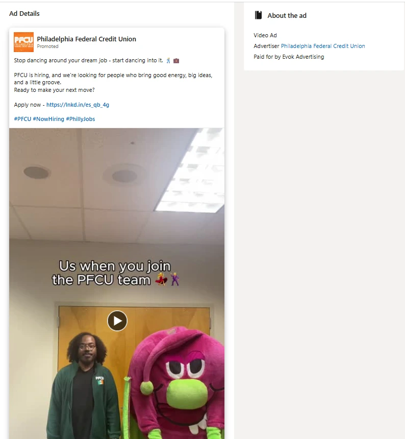 Hiring Ad Example: Philadelphia Federal Credit Union