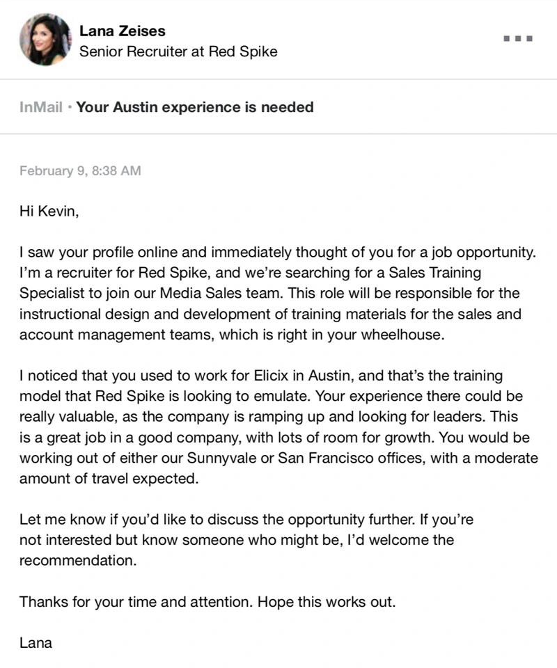 Pro Tip: Include a line about why they’re a fit and what makes your team exciting.