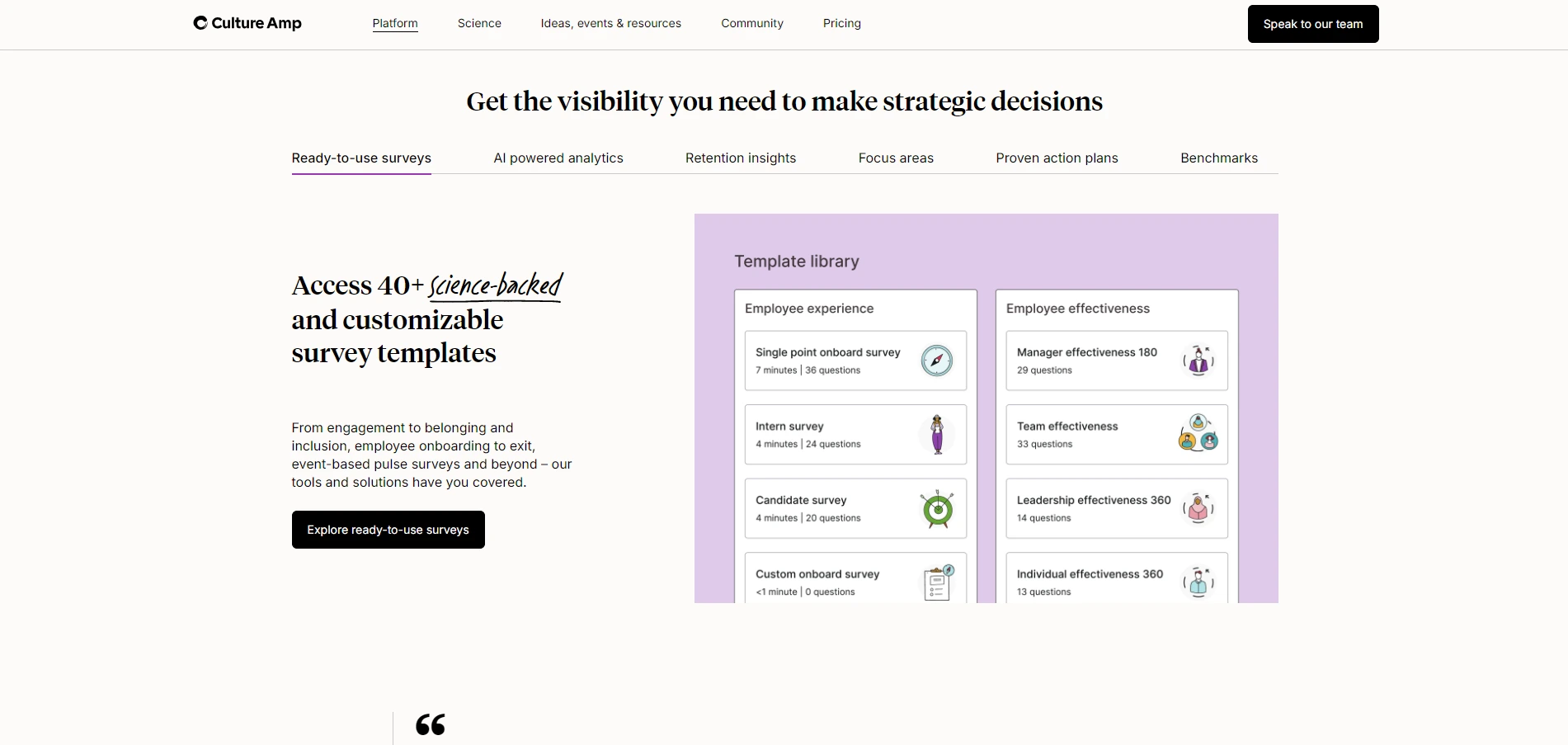 This all-in-one platform for employee engagement, performance, and development can empower your HR team to transform your company by providing tools for continuous feedback, goal tracking, and performance reviews. Its intuitive interface and powerful analytics make it easy to understand what drives employees and how to keep them engaged. By integrating seamlessly with your existing HR systems, Culture Amp ensures a smooth workflow and helps you make data-driven decisions that enhance your company culture.