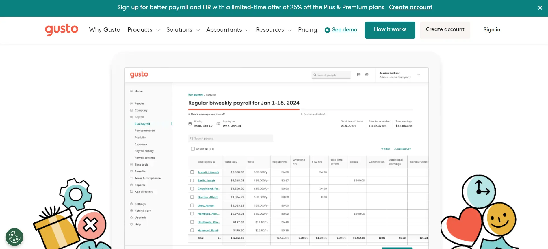 Gusto is an HR and payroll solution that automates HR and benefits administration, payroll, and compliance. It offers features such as onboarding, time tracking, and benefits administration. Gusto also provides a mobile app for both iOS and Android.