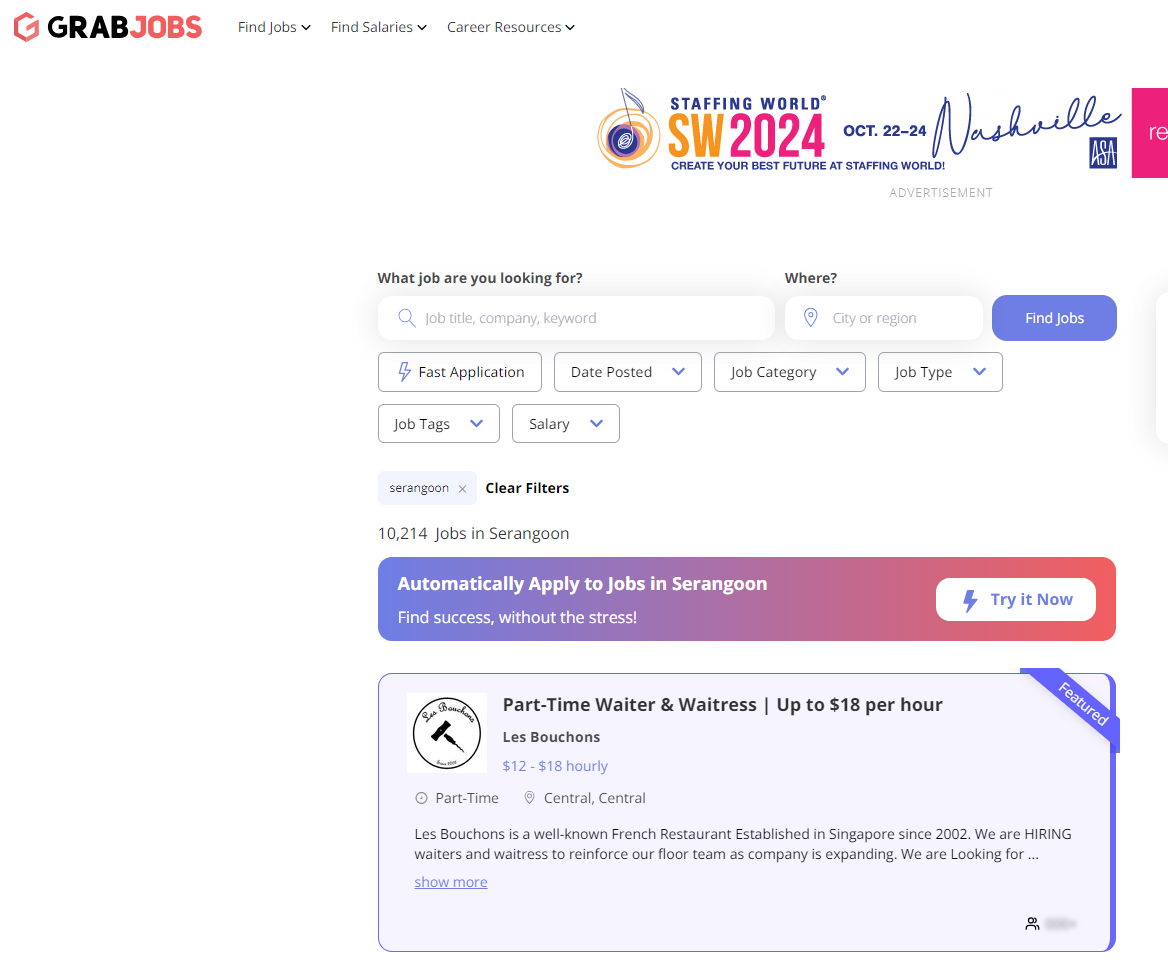 GrabJobs is a popular and user-friendly job portal among small and medium-sized enterprises (SMEs) in Singapore. The site comes with automated interview scheduling and candidate screening features, designed to save your time and make the process run more smoothly.