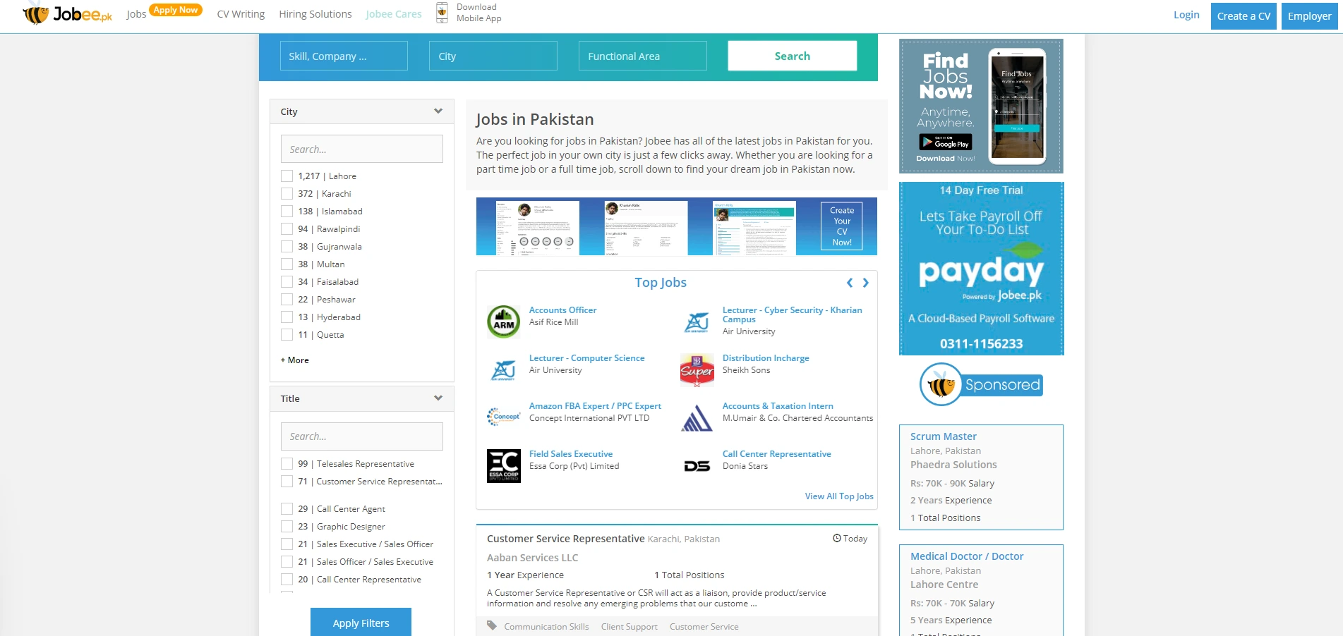 Careerjet is a job search engine that compiles listings from numerous websites, offering a wide range of job opportunities in Pakistan. It is particularly useful for recruiters looking to reach a large audience quickly. Careerjet’s advanced search options and user-friendly design make it a valuable tool for efficient recruitment.