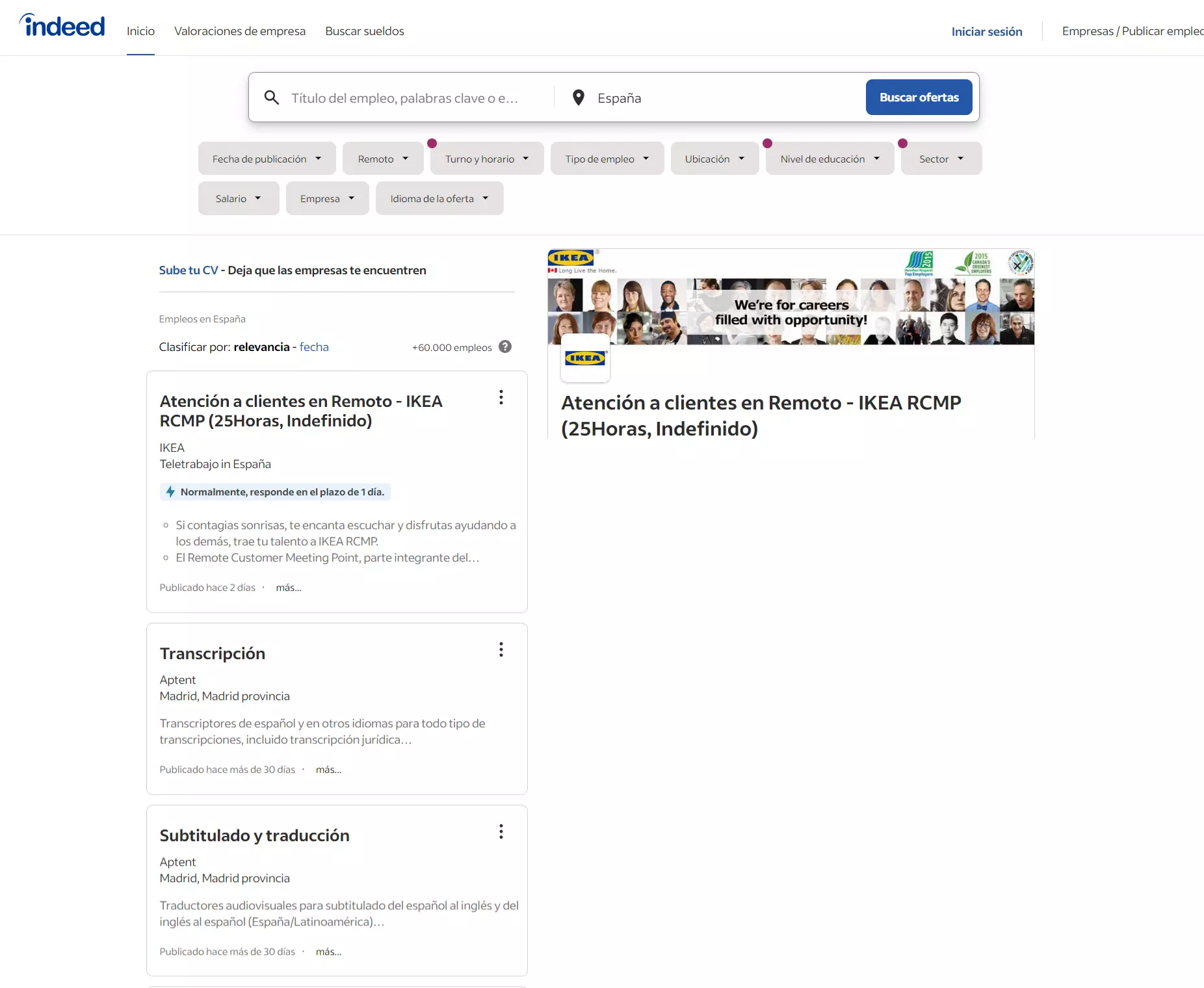 A big name around the world, including in Spain. Indeed attracts more than 250 million visitors monthly. This is where you can leverage the site to access a resume database of 175 million candidates. Indeed allows you to post jobs for free with paid features such as sponsored jobs, featured employer branding, and hiring campaigns.