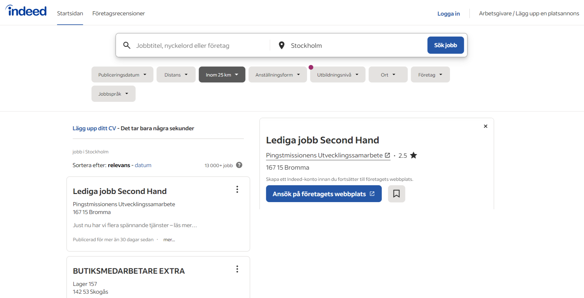 We are starting off the list with Blocket Jobb. It is one of Sweden’s leading job posting sites, known for its extensive reach and user-friendly interface. The site is particularly popular among international employers due to its large number of English-language job ads. It draws more than 700,000 visitors each month, making it a prime job posting site for Sweden-based recruiters.