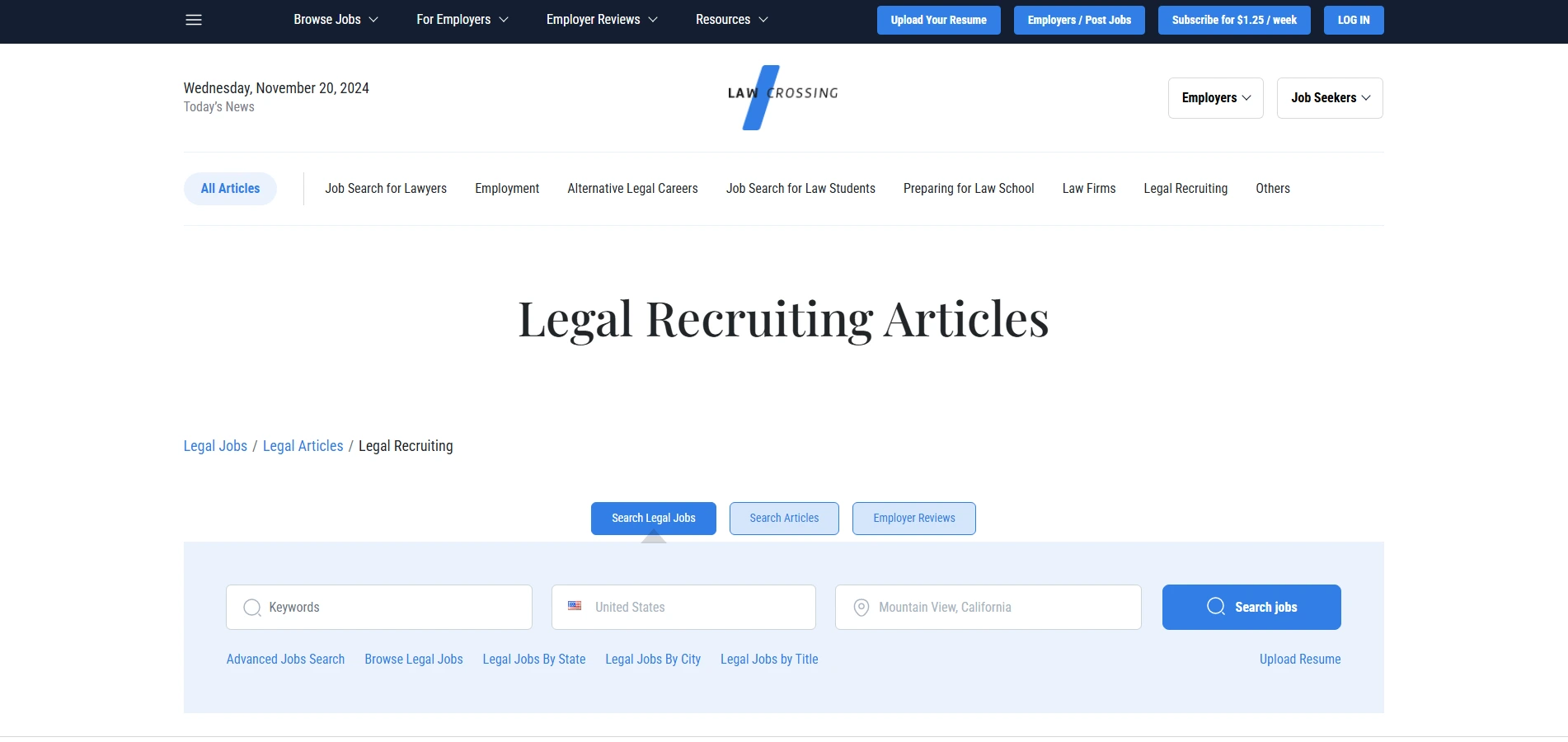 LawCrossing is one of the best legal job boards, focusing exclusively on legal professions and providing a vast array of job listings in the legal field across the U.S. It offers detailed search filters to help recruiters find both attorney and support staff roles, such as paralegals, legal assistants, and law clerks. LawCrossing prides itself on its comprehensive listings, which include positions from law firms, corporations, and government agencies, making it an essential resource for filling legal roles quickly and efficiently.