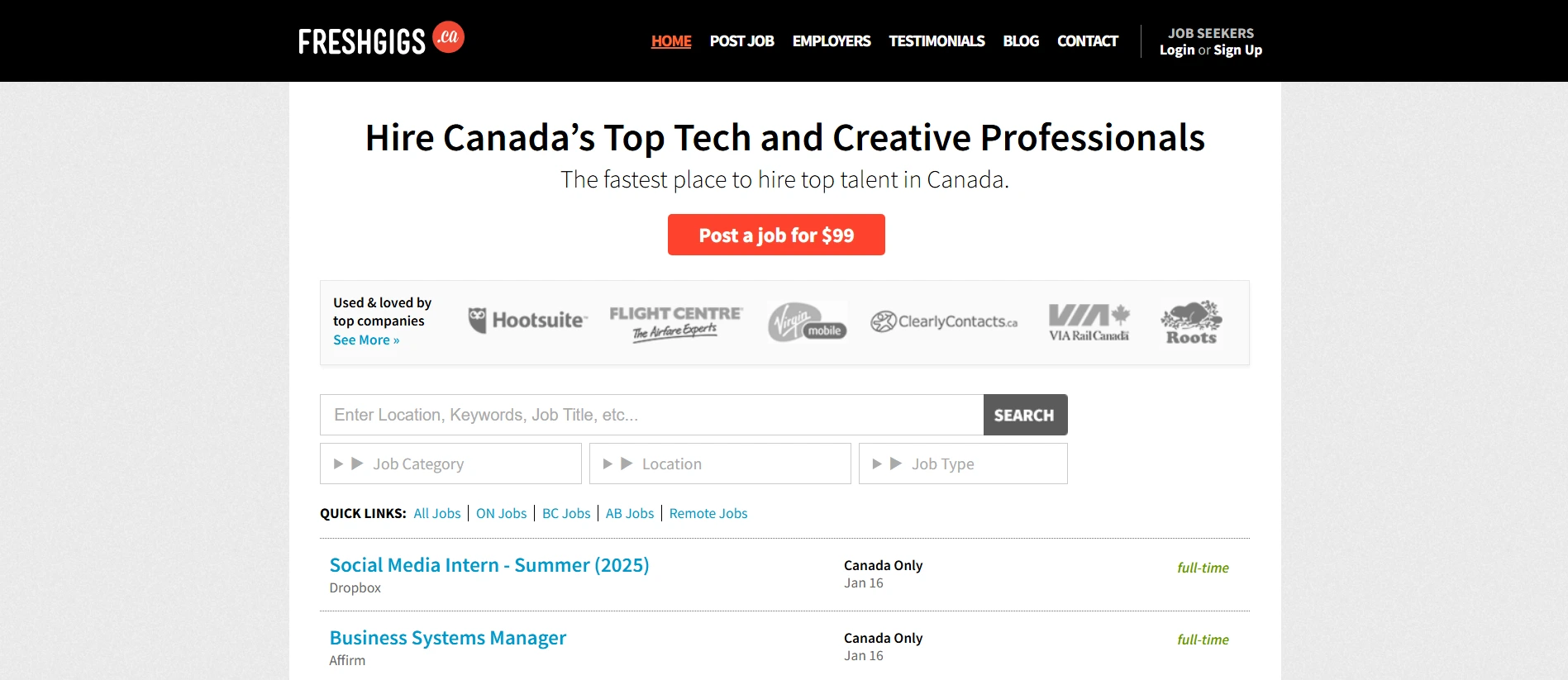 FreshGigs.ca focuses on marketing, communications, and creative job opportunities across Canada, with a specific emphasis on roles in the digital and media sectors. This platform is especially well-suited for recruiters looking to find talent in industries such as advertising, digital marketing, and content creation. The site allows employers to post job openings and access a highly-targeted pool of candidates with digital expertise. The platform offers a free job listing for a limited period, with paid options available for extended visibility and additional features. FreshGigs.ca is popular among marketing agencies and tech companies alike.