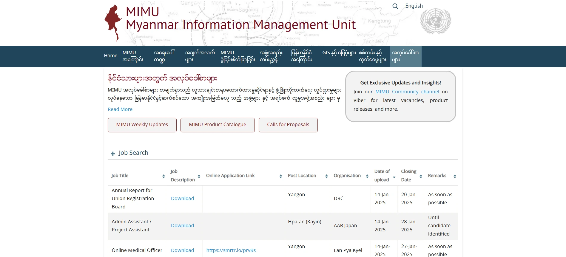 The Myanmar Information Management Unit (MIMU) is a unique platform focused on connecting organizations in the development, humanitarian, and non-profit sectors with local talent. Its “Jobs for Myanmar Nationals” section highlights opportunities for professionals passionate about making a positive impact in their communities. By catering to roles that emphasize social change and capacity building, MIMU provides employers with access to a targeted pool of dedicated candidates while empowering job seekers to find meaningful, impact-driven careers.