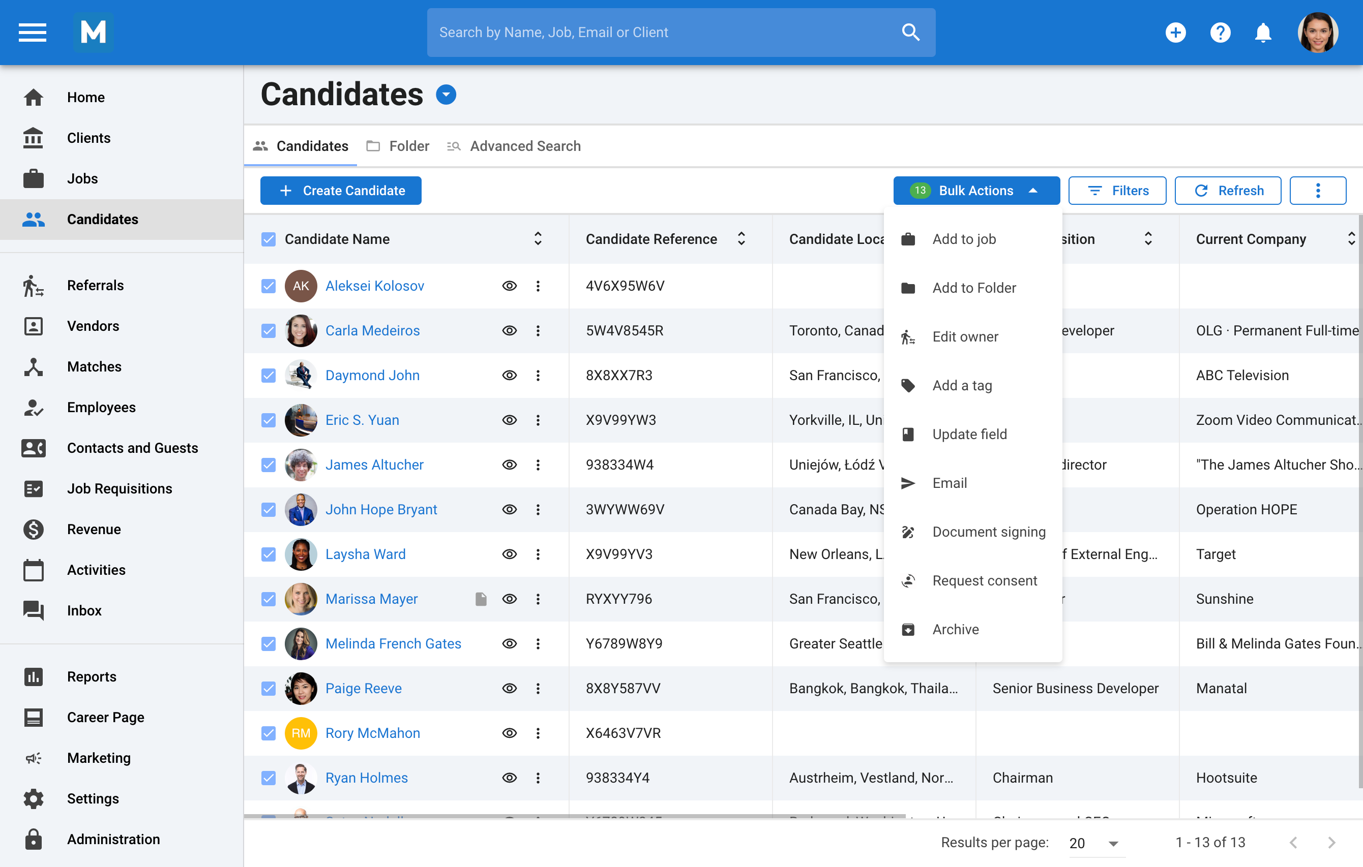 Manatal manages bulk recruiting processes with advanced tools from sourcing to job offers. Our platform empowers you to efficiently manage large numbers of candidates, freeing you to focus on strategic decisions.